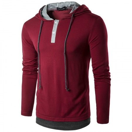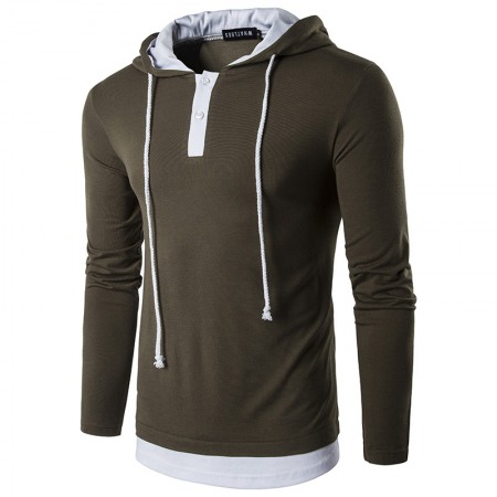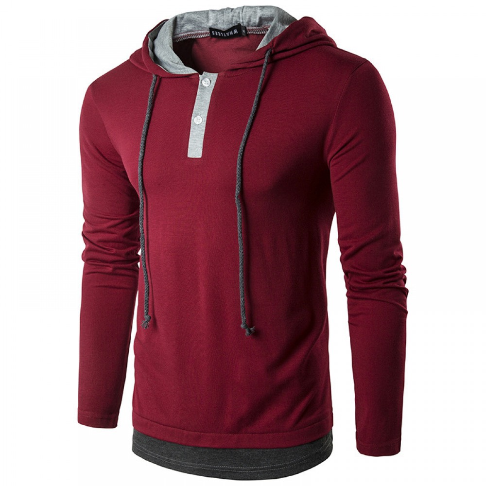 New Men's Fashion Street High Street Style Hooded Drawstring Long-Sleeved T-Shirt