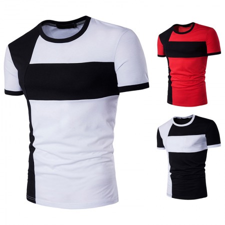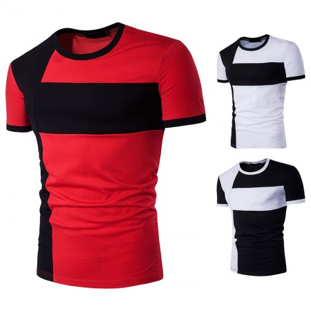Men's Stitching Round Neck Short Sleeve Large Size T-Shirt