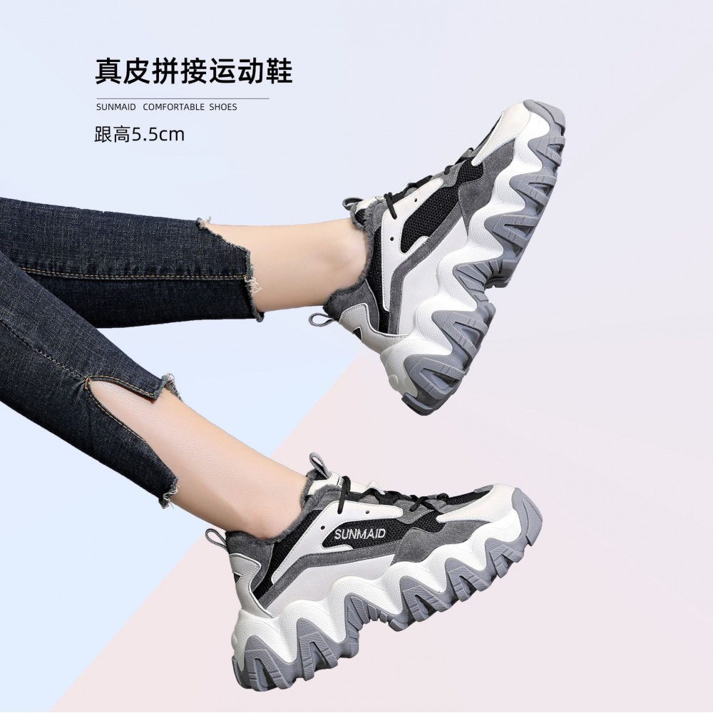 New Women's Trendy Shoes Plus Velvet Thick-Soled Increased Sports Casual Shoes
