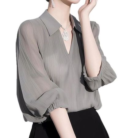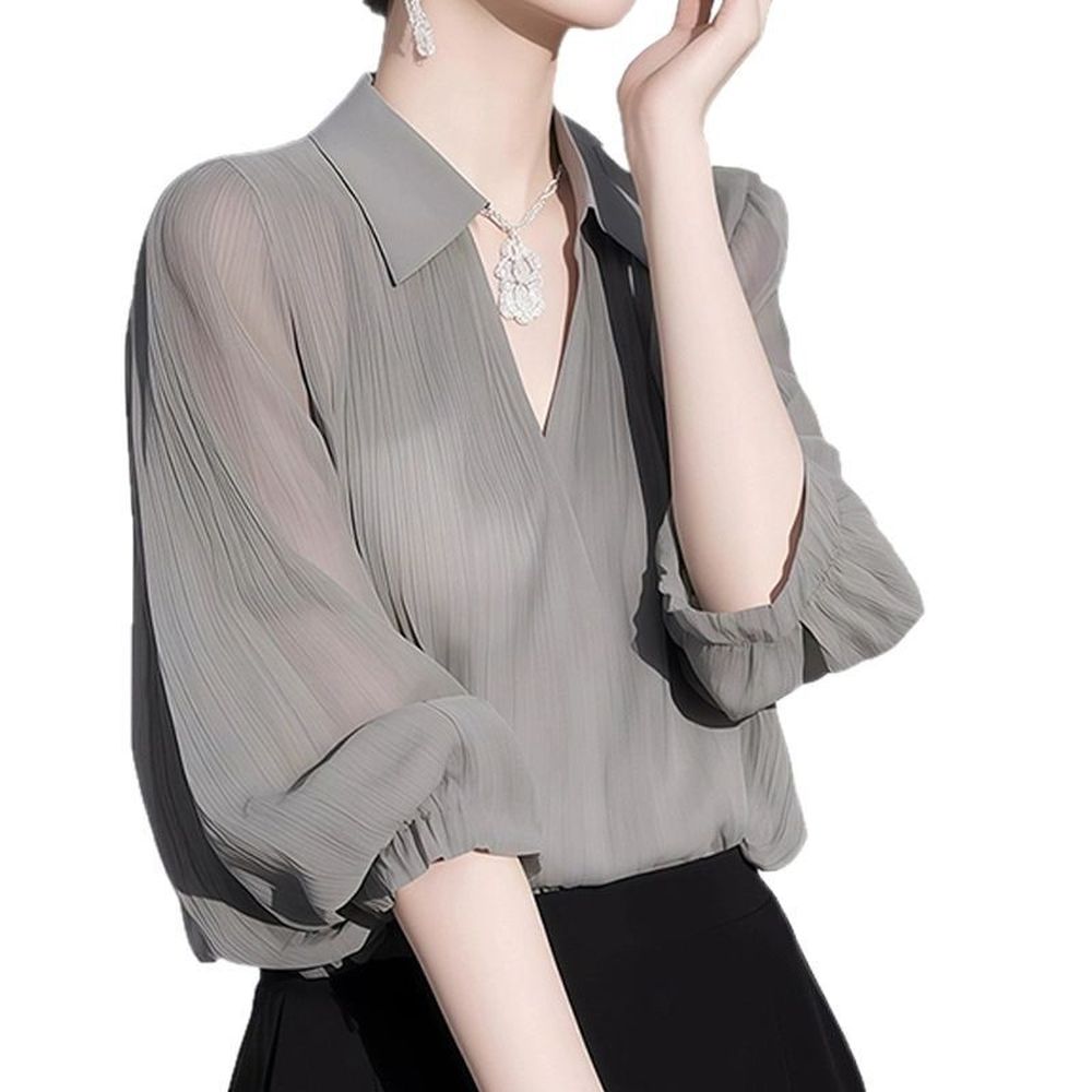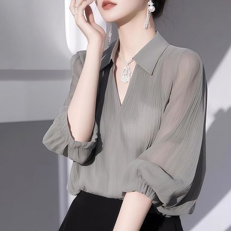 Women's Literary Casual Lapel Striped Double-Layer Cotton Gauze Long Sleeve Shirt
