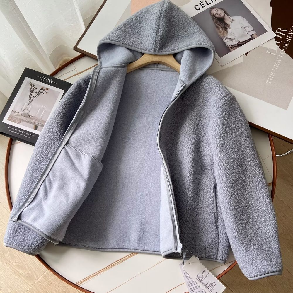 Women's Polar Fleece Hooded Jacket Long-Sleeved Warm Zipper Cardigan